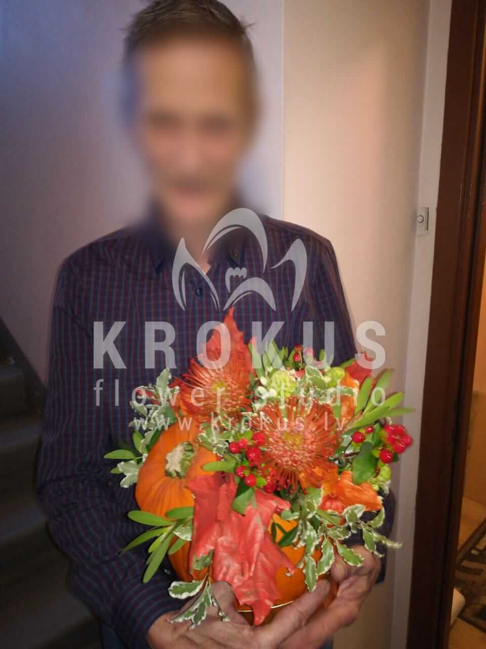 Ziedu sastāvā: Īlekss, Leikodendroni, Brunija, Leucospermum, Ķirbis.