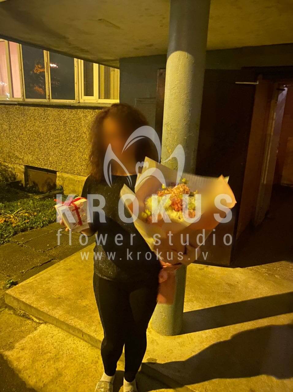 Mēs piegādājām vēl vienu pasūtījumu uz pilsētu Rīga. Pasūtītājs vēlējās: Ziedu piegāde Daniella (Pušķa sastāvs var nedaudz atšķirties no attēlā redzamā, atkarībā no sezonas!). Ziedu piegāde Raffaello 150g (Konfektes RAFFAELLO, 150g