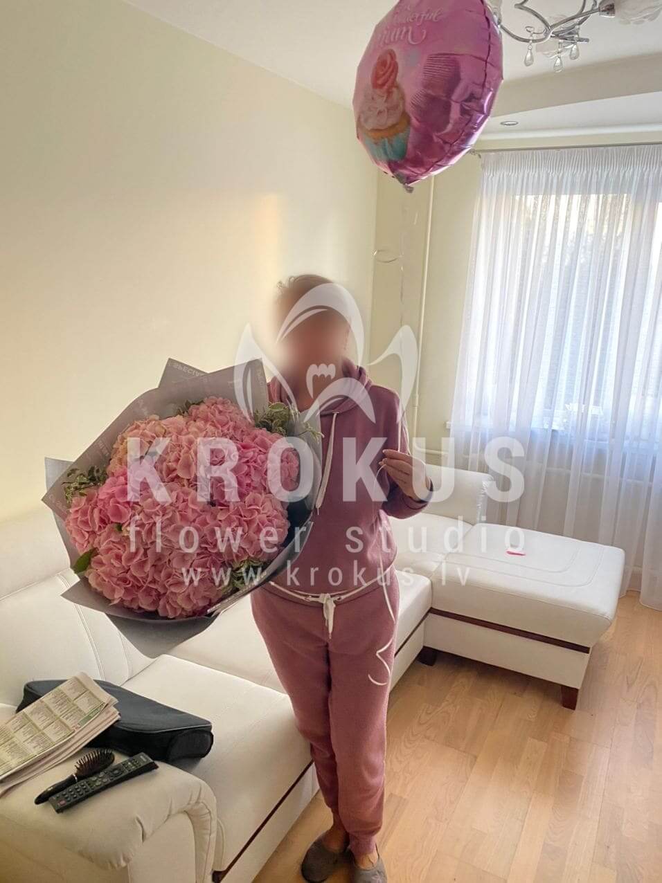 Mēs piegādājām vēl vienu pasūtījumu uz pilsētu Rīga. Pasūtītājs vēlējās: Ziedu piegāde Rozā hortenziju pušķis. Ziedu piegāde Balons Mammai