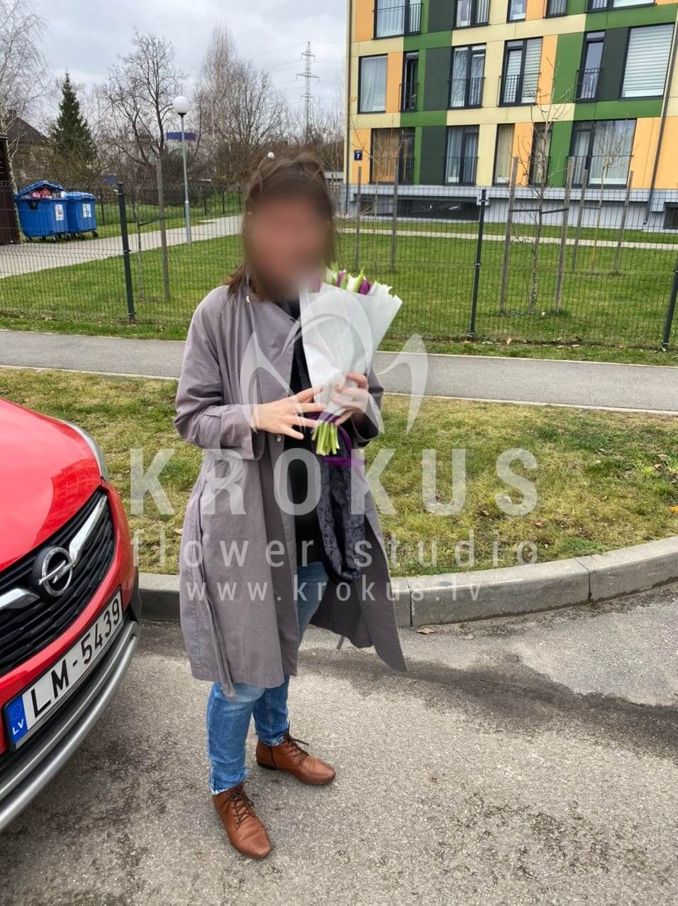 Mēs piegādājām vēl vienu pasūtījumu uz pilsētu Rīga. Pasūtītājs vēlējās: Ziedu piegāde Balto un violeto tulpju pušķis