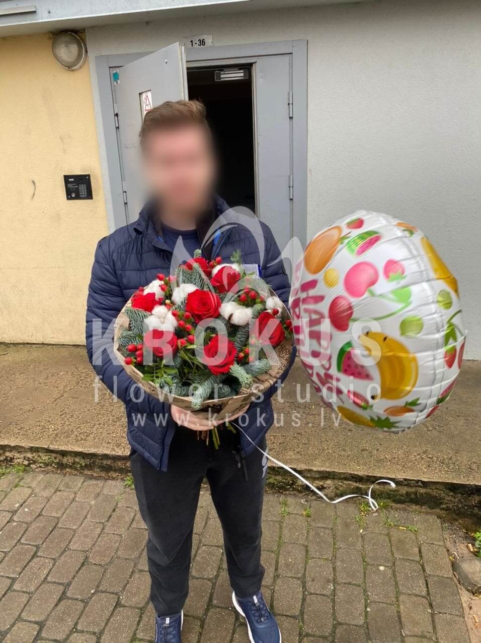 Mēs piegādājām vēl vienu pasūtījumu uz pilsētu Rīga. Pasūtītājs vēlējās: Ziedu piegāde Ziemassvētku eglītes aromāts. Ziedu piegāde Balons Daudz laimes