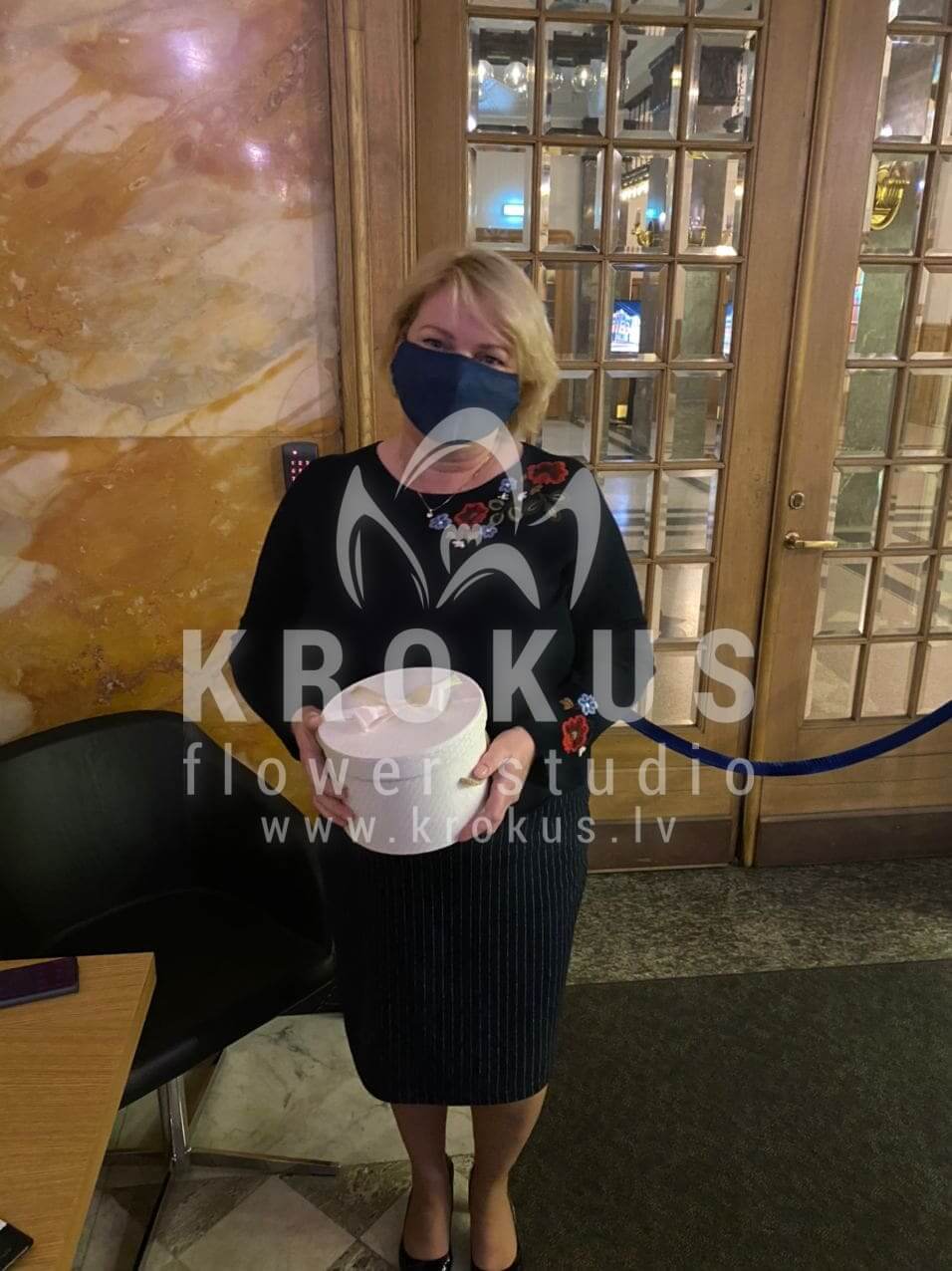 Mēs piegādājām vēl vienu pasūtījumu uz pilsētu Rīga. Pasūtītājs vēlējās: Ziedu piegāde Flowerbox ar makarūniem (macaroon) (Izmērs: