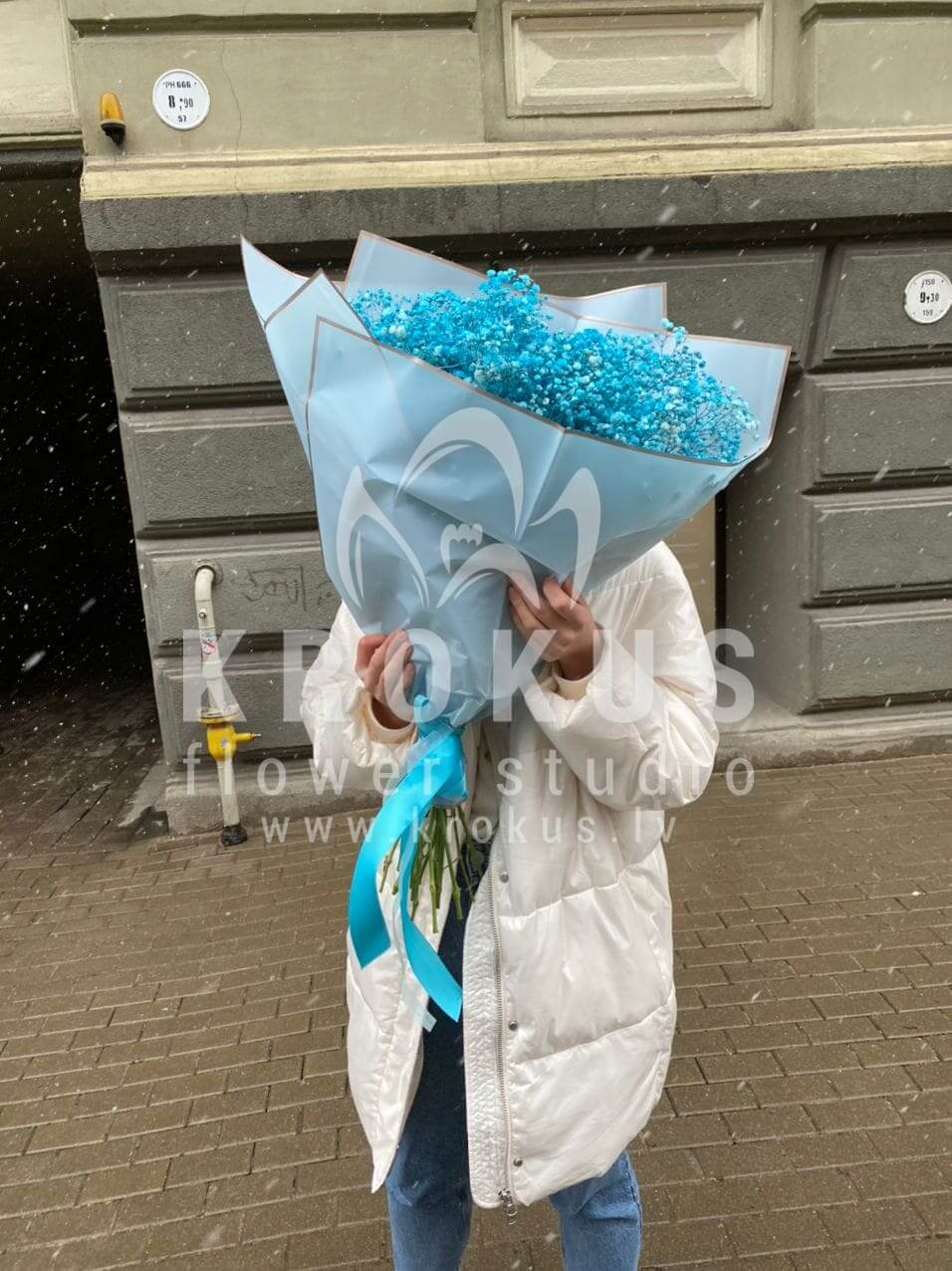 Mēs piegādājām vēl vienu pasūtījumu uz pilsētu Rīga. Pasūtītājs vēlējās: Ziedu piegāde Pušķis no zilās gipsofilas