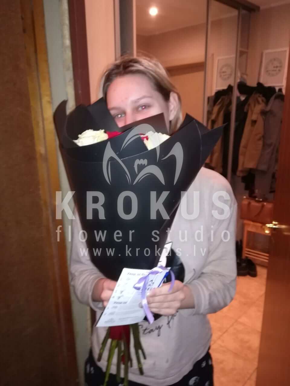 Ziedu sastāvā: Baltas rozes, Sarkanas rozes.