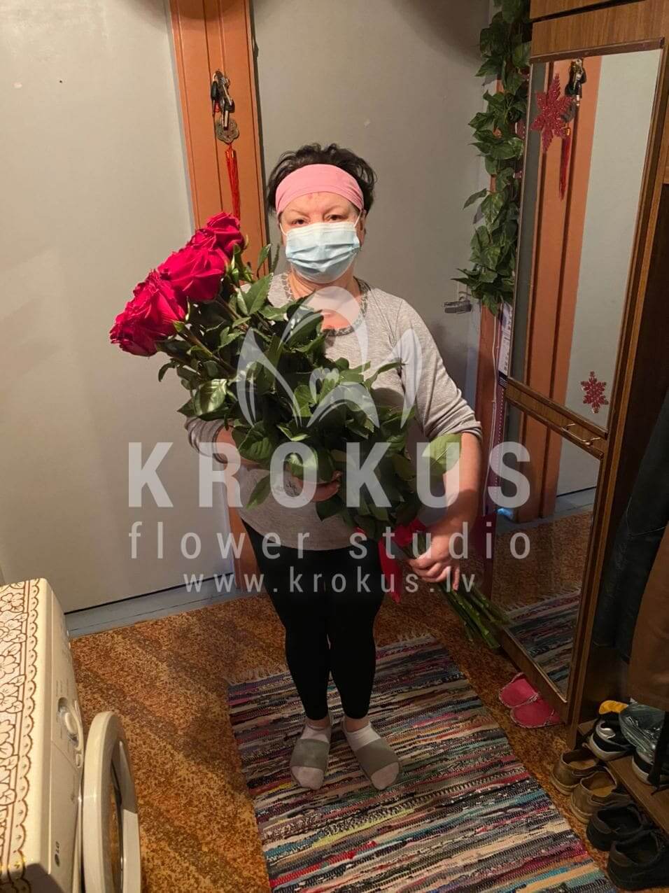 Mēs piegādājām vēl vienu pasūtījumu uz pilsētu Rīga. Pasūtītājs vēlējās: Ziedu piegāde Sarkanas rozes 60сm