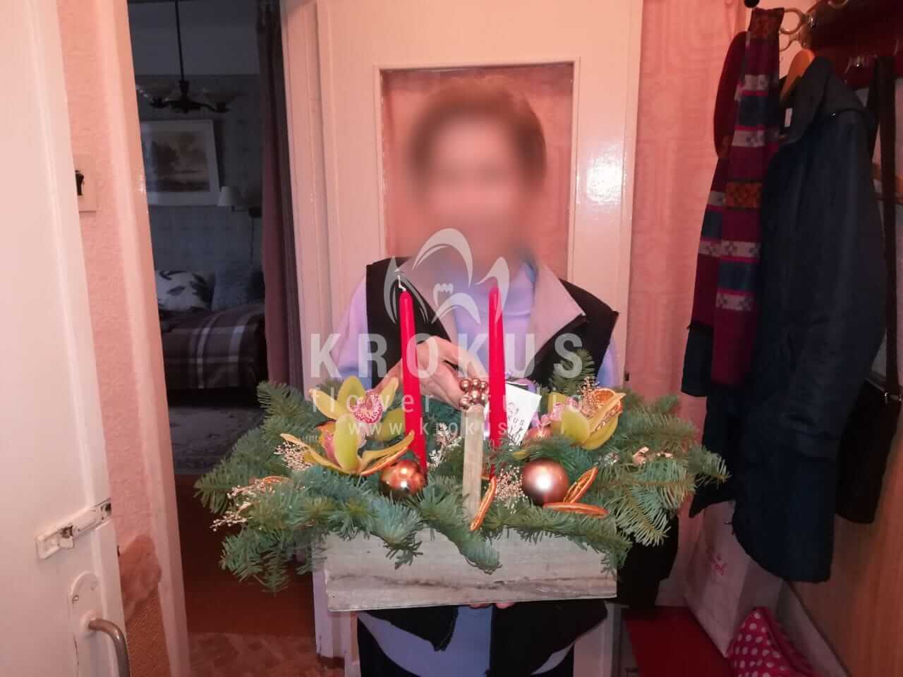 Mēs piegādājām vēl vienu pasūtījumu uz pilsētu Rīga. Pasūtītājs vēlējās: Ziedu piegāde Ziemassvētku kompozīcija ''Ornella''