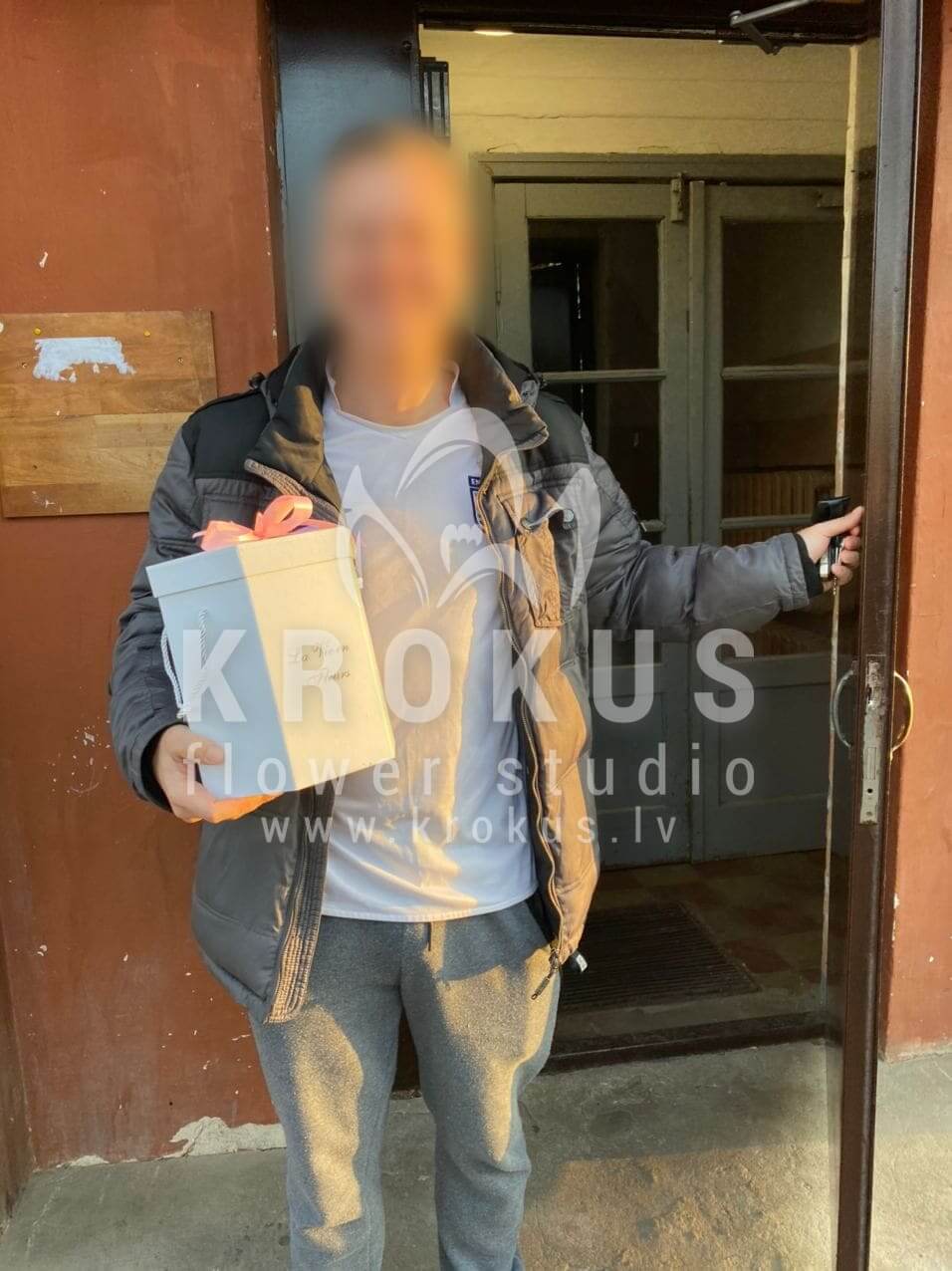 Mēs piegādājām vēl vienu pasūtījumu uz pilsētu Rīga. Pasūtītājs vēlējās: Ziedu piegāde Flowerbox ar makarūniem (macaron) (Izmērs: