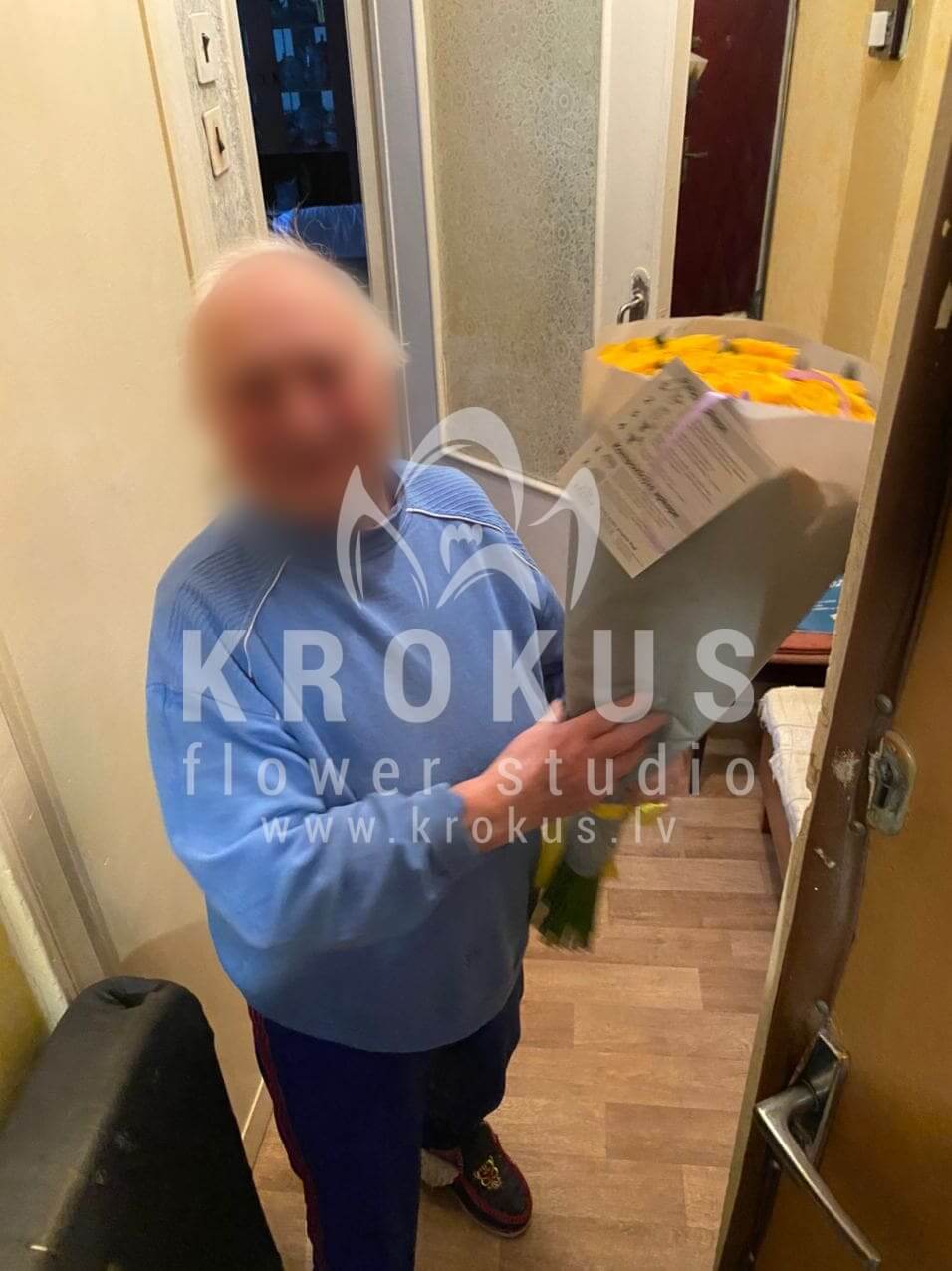 Mēs piegādājām vēl vienu pasūtījumu uz pilsētu Rīga. Pasūtītājs vēlējās: Ziedu piegāde Dzeltenas rozes 80cm