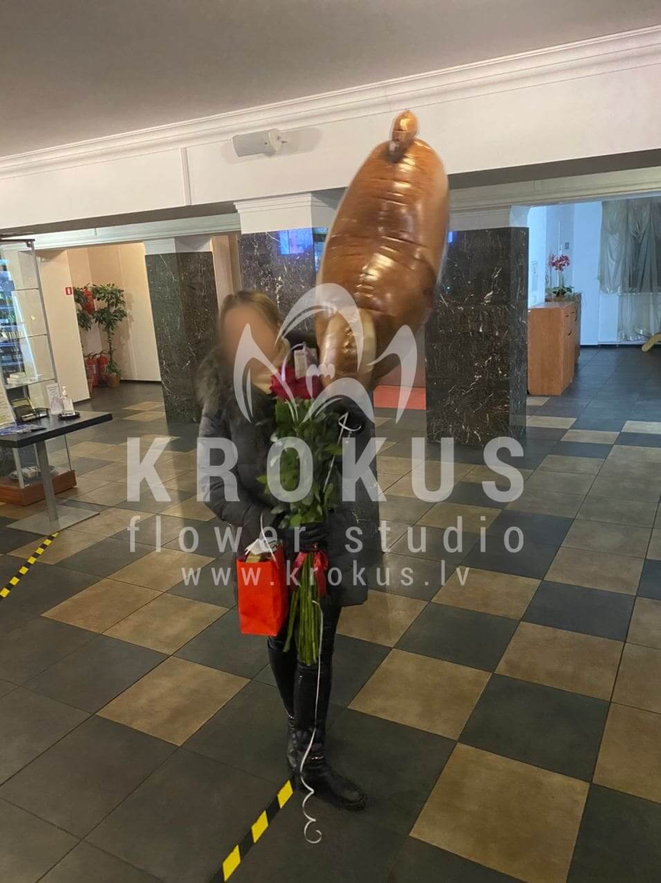 Mēs piegādājām vēl vienu pasūtījumu uz pilsētu Rīga. Pasūtītājs vēlējās: Ziedu piegāde Sarkanas rozes 50cm (Pirms noformēt pasūtījumu, lūgums noskaidrot to pieejamību +37120030306). Ziedu piegāde Follija Balons Lācītis 89cm