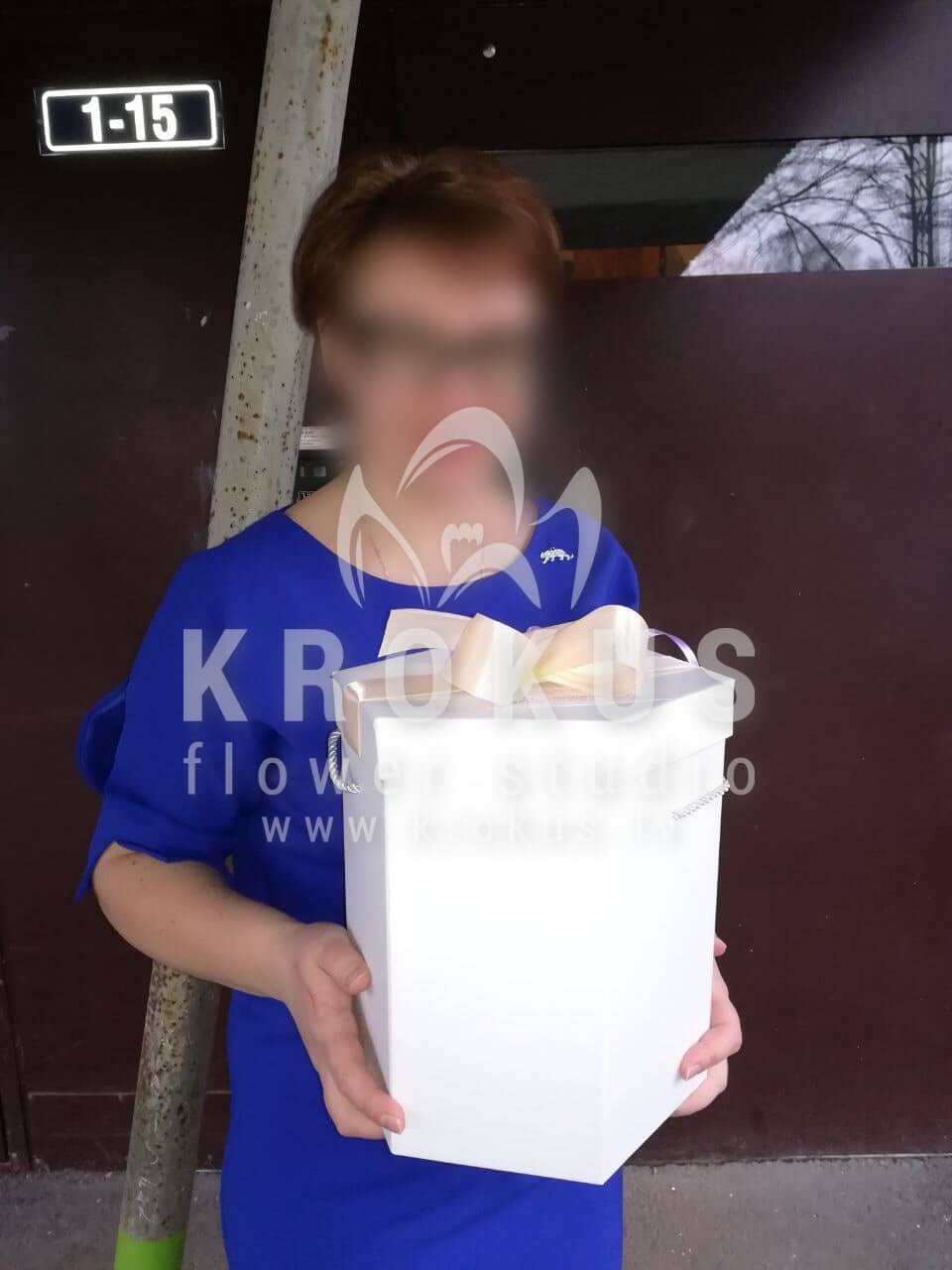 Mēs piegādājām vēl vienu pasūtījumu uz pilsētu Rīga. Pasūtītājs vēlējās: Ziedu piegāde Flowerbox ar macarooniem (Izmērs: