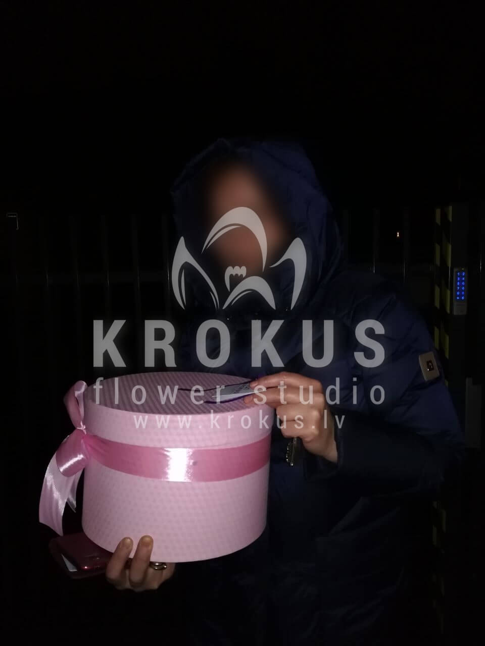 Mēs piegādājām vēl vienu pasūtījumu uz pilsētu Rīga. Pasūtītājs vēlējās: Ziedu piegāde Flowerbox ar macarooniem (Izmērs: