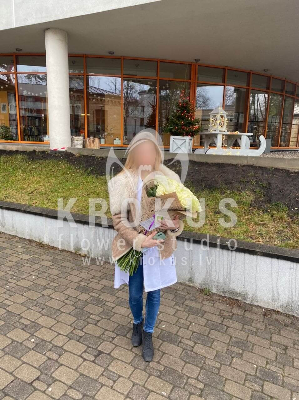 Mēs piegādājām vēl vienu pasūtījumu uz pilsētu Rīga. Pasūtītājs vēlējās: Ziedu piegāde Baltas rozes XXL 50cm