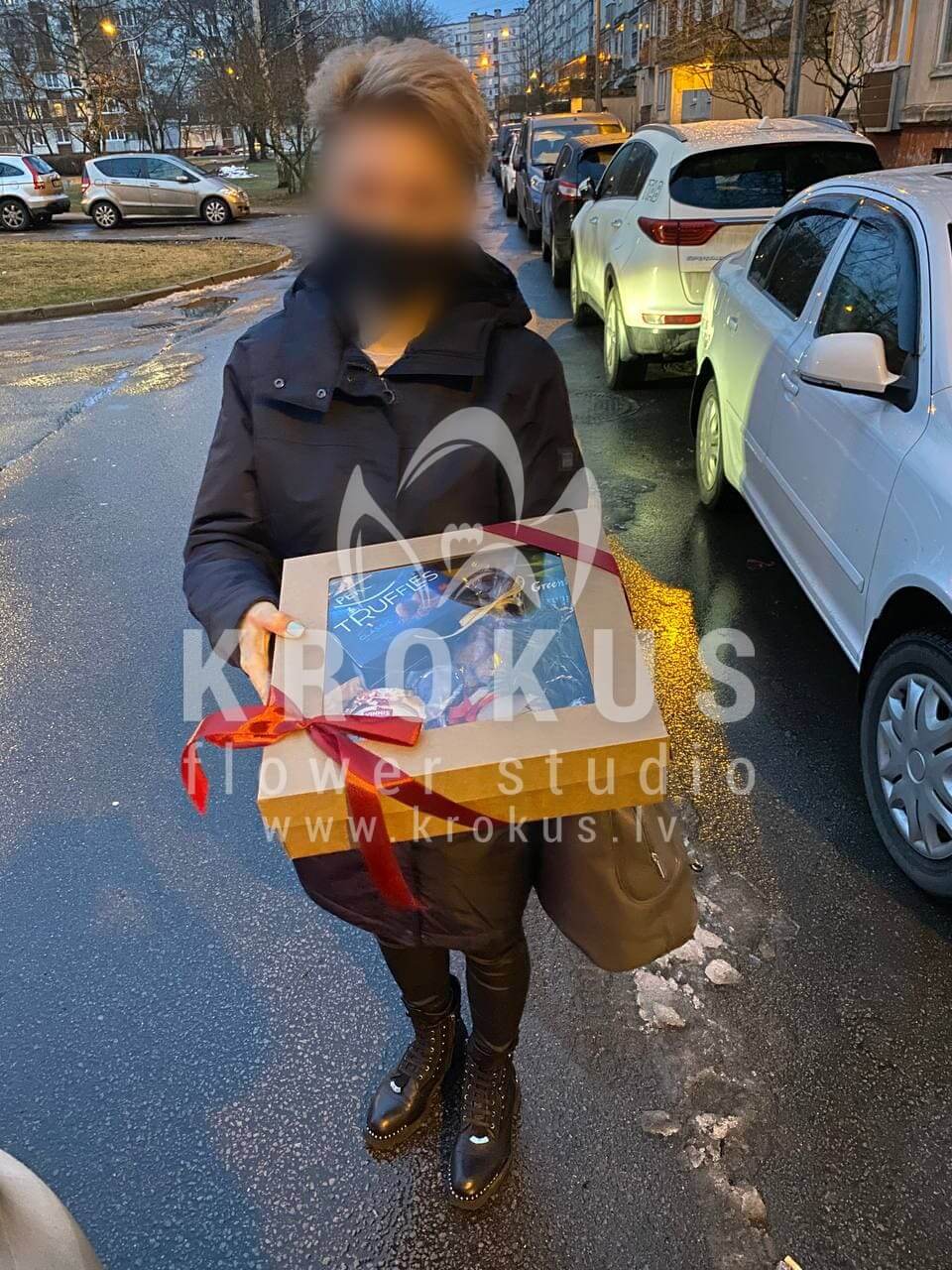Mēs piegādājām vēl vienu pasūtījumu uz pilsētu Rīga. Pasūtītājs vēlējās: Ziedu piegāde Ziemassvētku dāvanu komplekts
