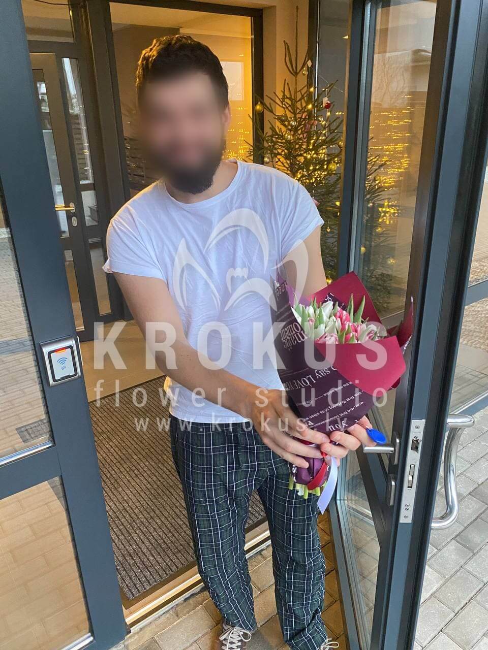 Mēs piegādājām vēl vienu pasūtījumu uz pilsētu Rīga. Pasūtītājs vēlējās: Ziedu piegāde Sarkano un balto tulpju pušķis