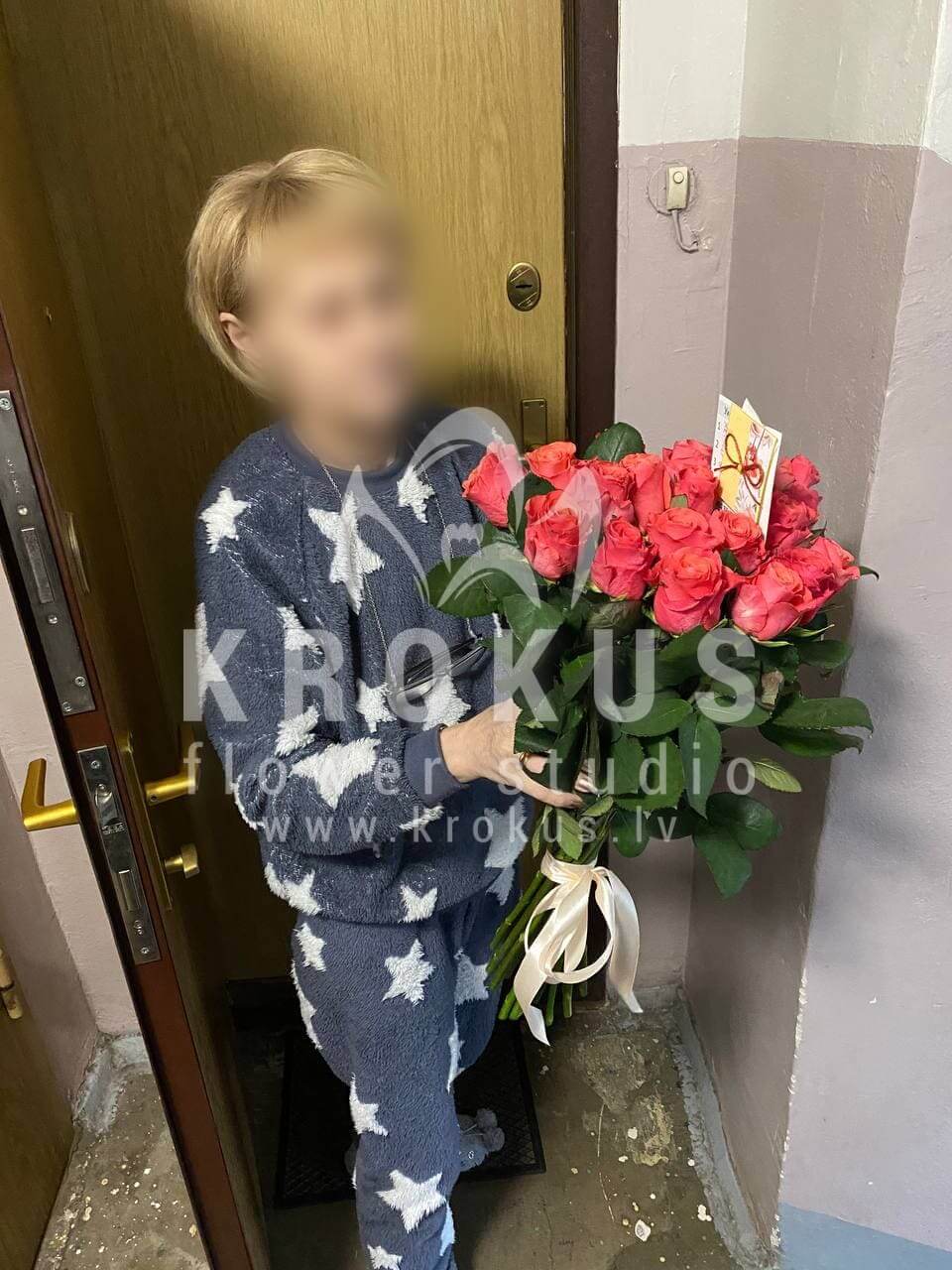 Mēs piegādājām vēl vienu pasūtījumu uz pilsētu Rīga. Pasūtītājs vēlējās: Ziedu piegāde Rozā rozes 60cm