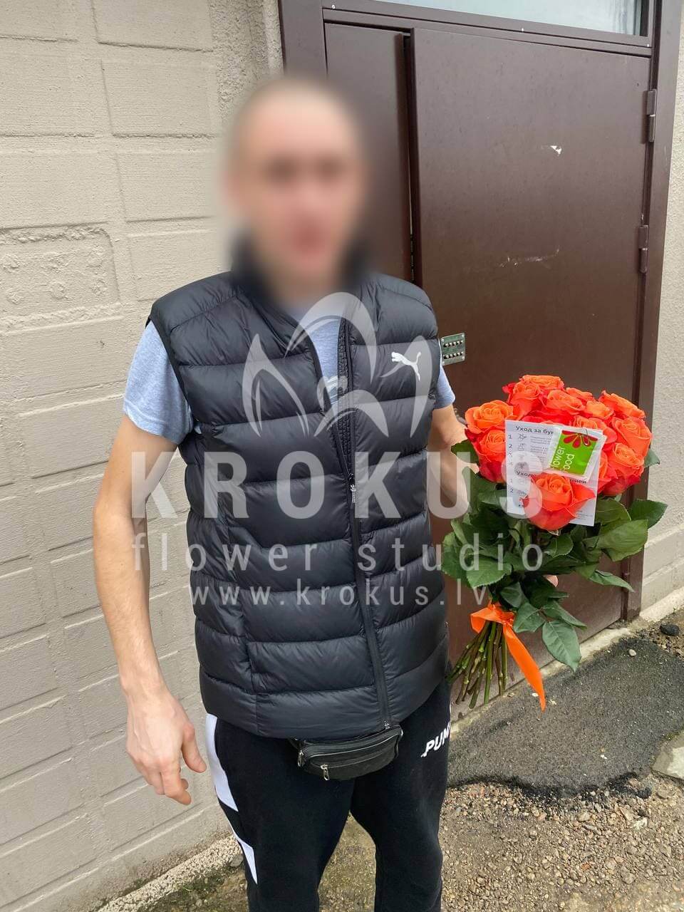 Mēs piegādājām vēl vienu pasūtījumu uz pilsētu Rīga. Pasūtītājs vēlējās: Ziedu piegāde Oranžas rozes 50cm
