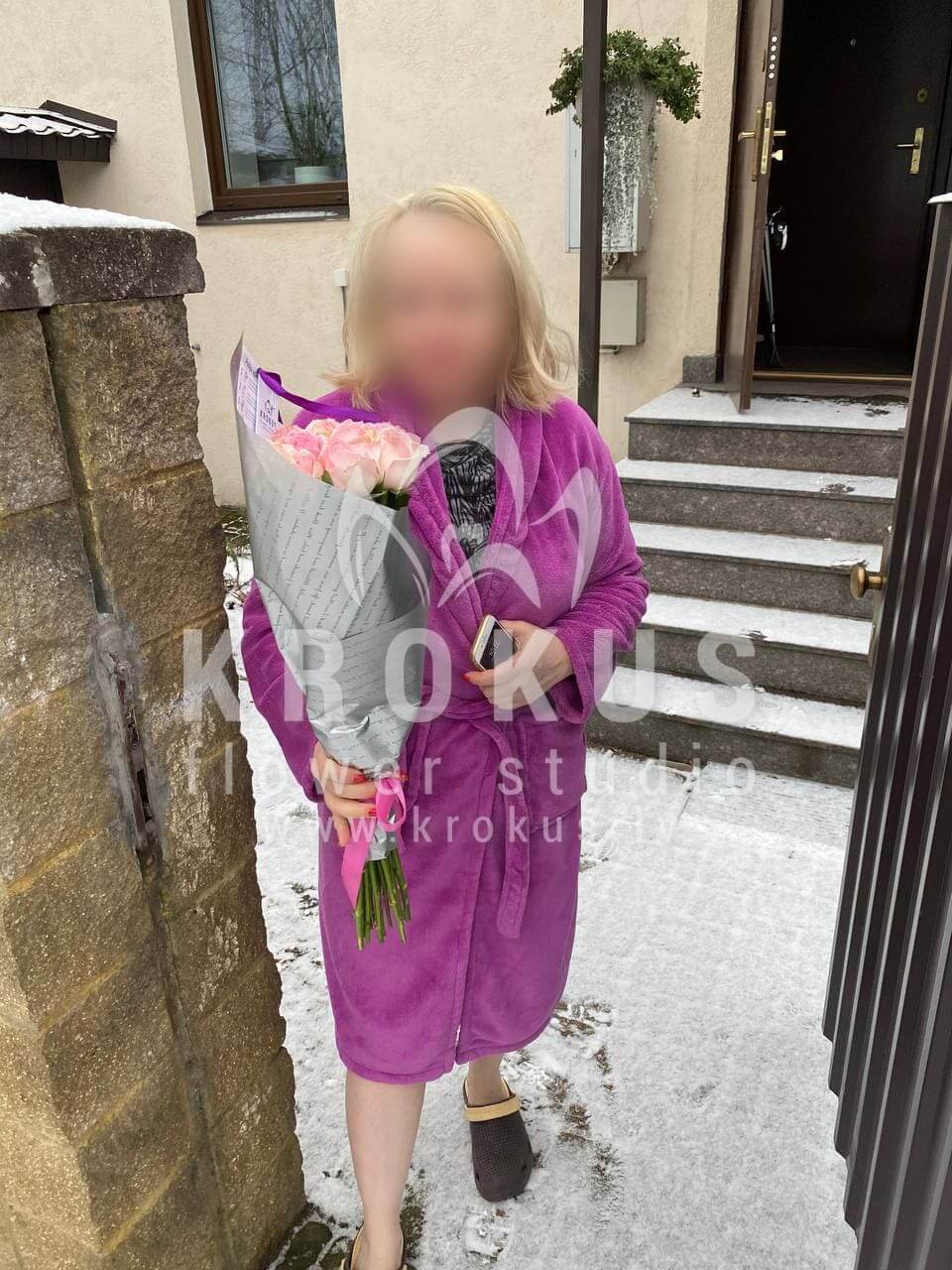 Mēs piegādājām vēl vienu pasūtījumu uz pilsētu Rīga. Pasūtītājs vēlējās: Ziedu piegāde Rozā rozes 50cm