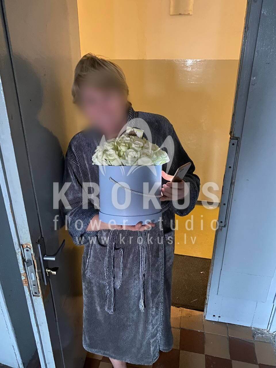 Mēs piegādājām vēl vienu pasūtījumu uz pilsētu Rīga. Pasūtītājs vēlējās: Ziedu piegāde Baltas rozes stilīgā cepuru kastē (Fotogrāfijai ir ilustratīvs nolūks. Kastes krāsa var atšķirties.)
