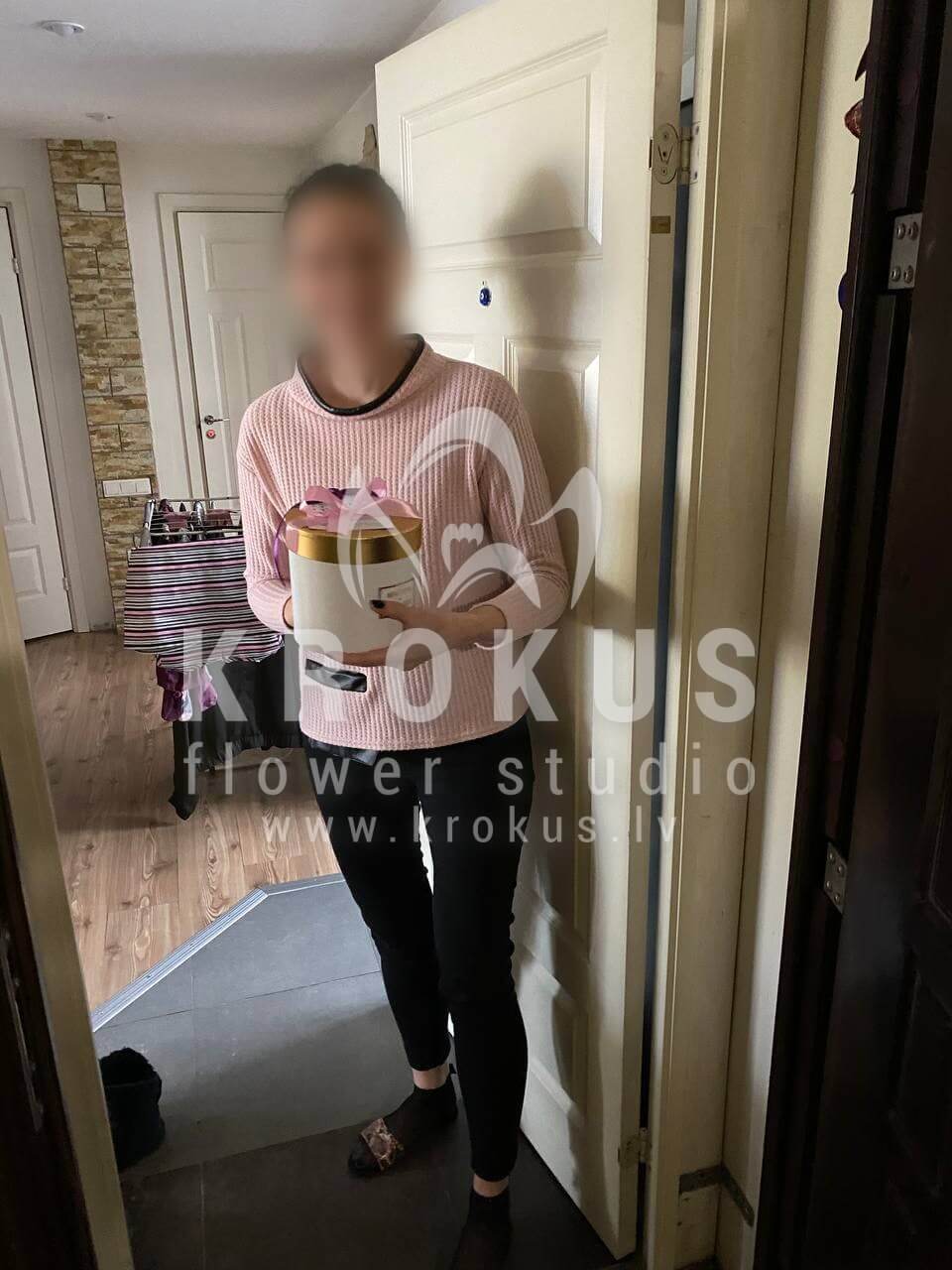 Mēs piegādājām vēl vienu pasūtījumu uz pilsētu Rīga. Pasūtītājs vēlējās: Ziedu piegāde Flowerbox ar makarūniem (macaron) (Izmērs: