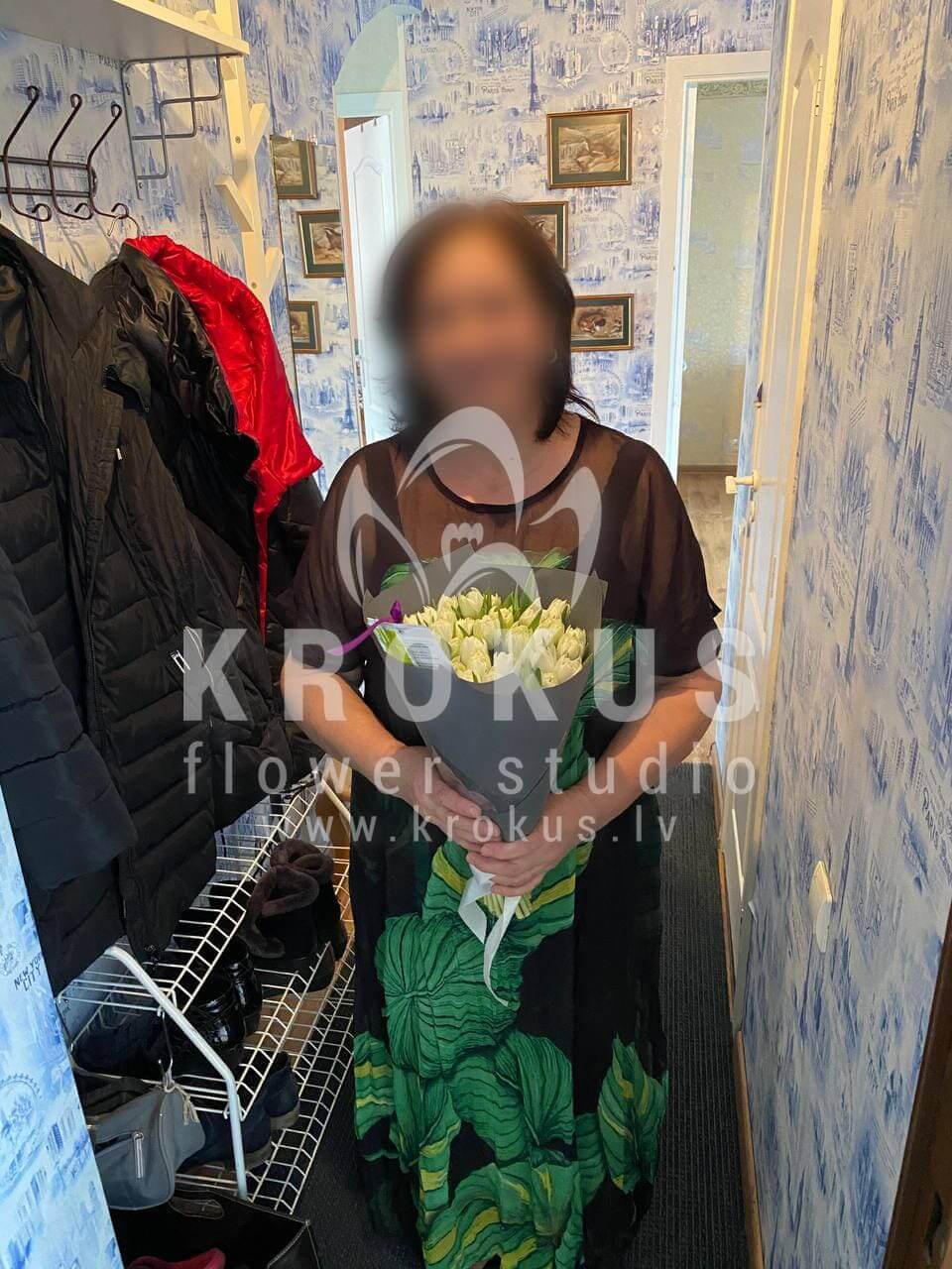 Mēs piegādājām vēl vienu pasūtījumu uz pilsētu Rīga. Pasūtītājs vēlējās: Ziedu piegāde Krēmīgas peonijveida tulpes