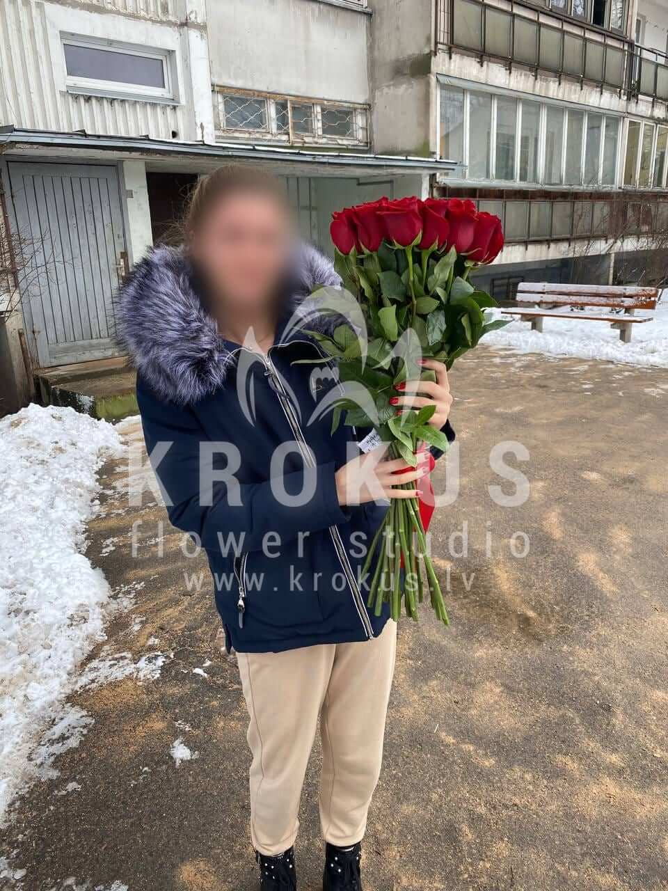 Mēs piegādājām vēl vienu pasūtījumu uz pilsētu Rīga. Pasūtītājs vēlējās: Ziedu piegāde Sarkanas rozes XXL 60cm