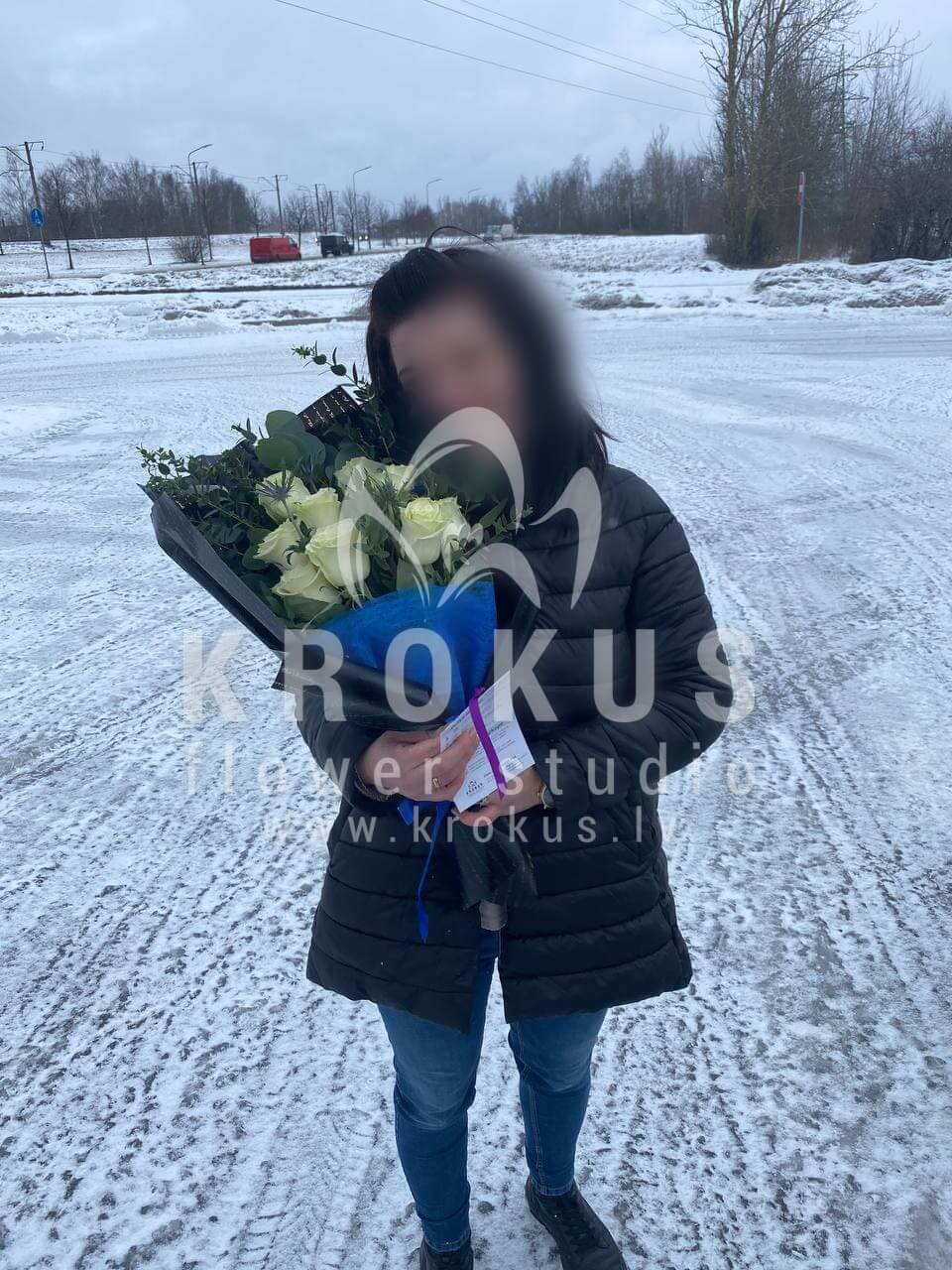 Ziedu sastāvā: Baltas rozes, Eikalipts.