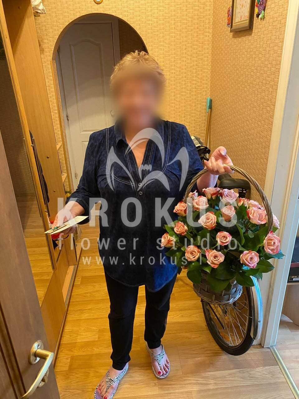 Mēs piegādājām vēl vienu pasūtījumu uz pilsētu Rīga. Pasūtītājs vēlējās: Ziedu piegāde Divkrāsu rozes grozā