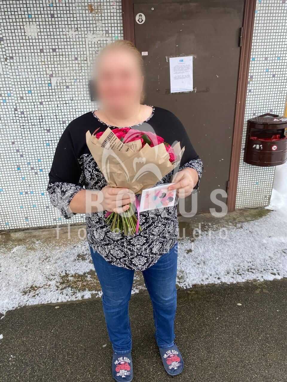 Mēs piegādājām vēl vienu pasūtījumu uz pilsētu Rīga. Pasūtītājs vēlējās: Ziedu piegāde Aveņkrāsas rozes 40cm
