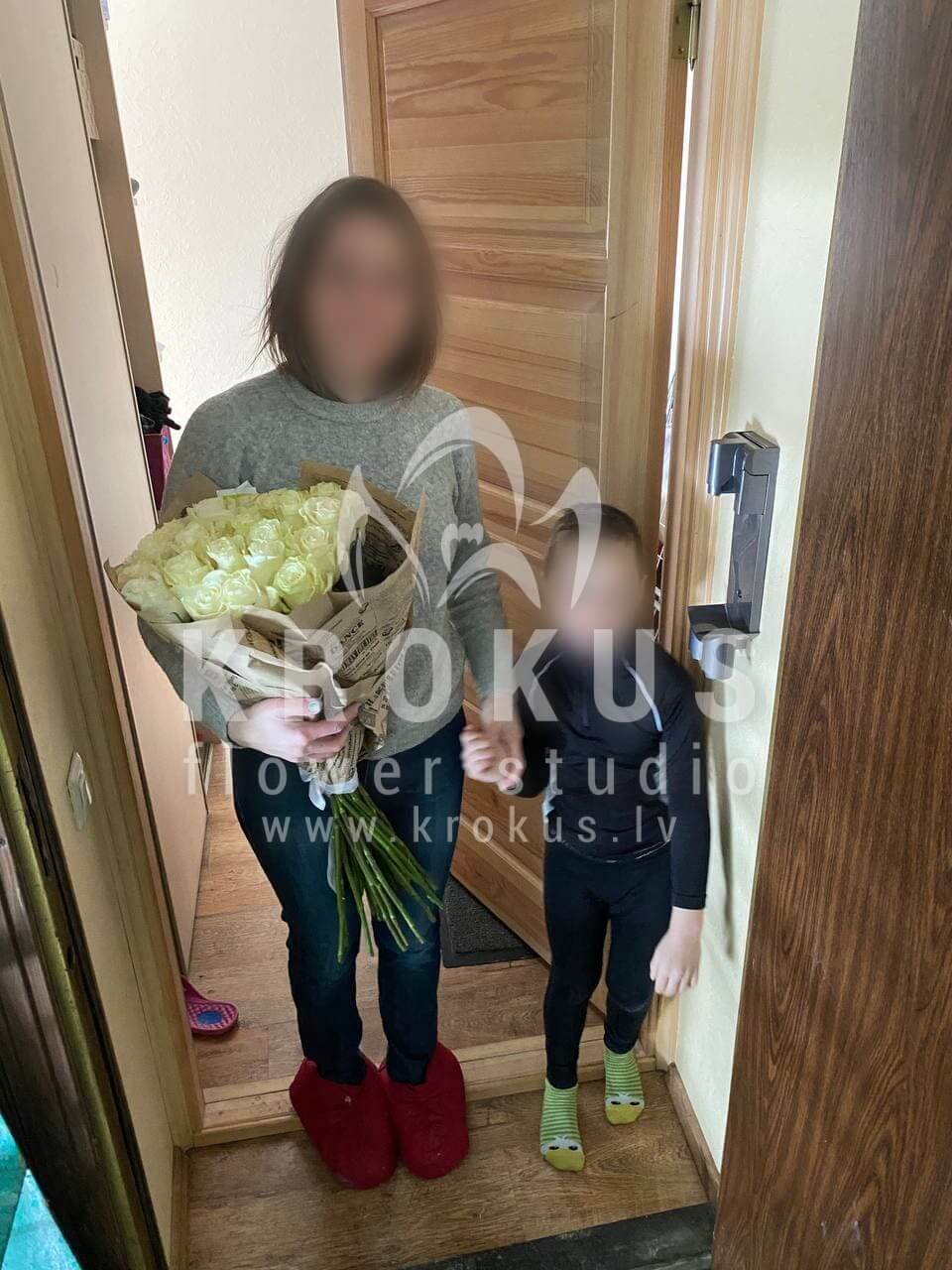 Mēs piegādājām vēl vienu pasūtījumu uz pilsētu Rīga. Pasūtītājs vēlējās: Ziedu piegāde Baltu rožu pušķis 70cm
