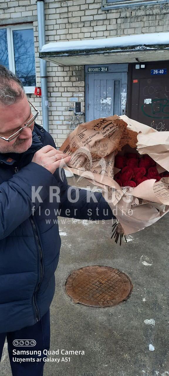 Mēs piegādājām vēl vienu pasūtījumu uz pilsētu Rīga. Pasūtītājs vēlējās: Ziedu piegāde Aveņkrāsas rozes 40cm