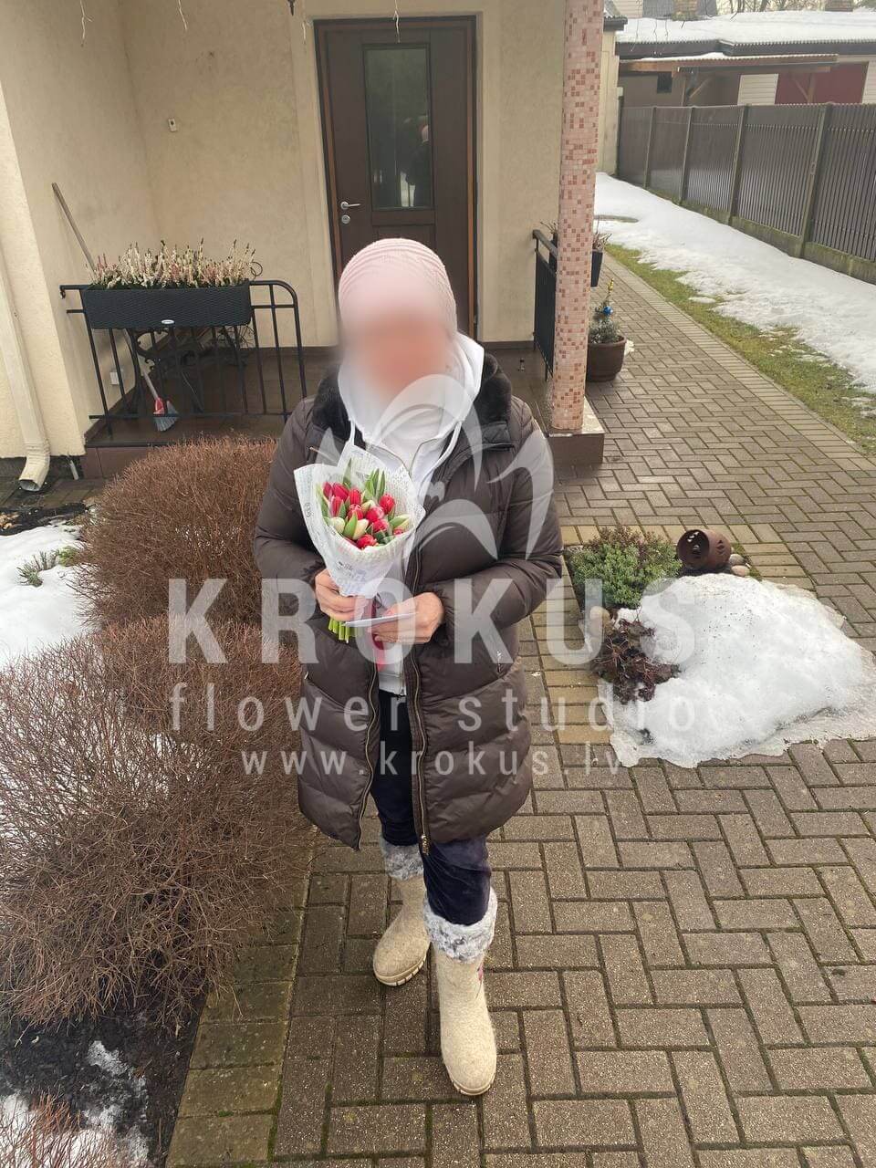 Mēs piegādājām vēl vienu pasūtījumu uz pilsētu Rīga. Pasūtītājs vēlējās: Ziedu piegāde Sarkano un balto tulpju pušķis