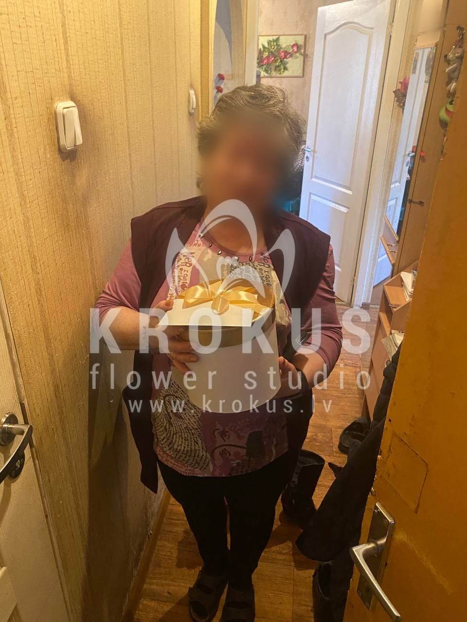 Mēs piegādājām vēl vienu pasūtījumu uz pilsētu Rīga. Pasūtītājs vēlējās: Ziedu piegāde Flowerbox ar macarooniem (Izmērs: