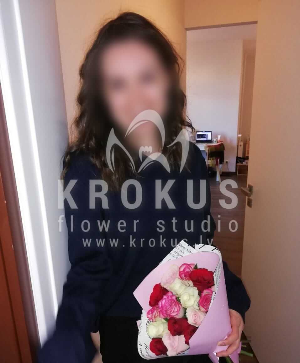 Ziedu sastāvā: Rozā rozes, Dzeltenas rozes, Oranžas rozes, Baltas rozes, Sarkanas rozes.