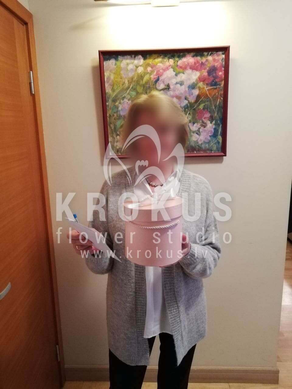 Mēs piegādājām vēl vienu pasūtījumu uz pilsētu Rīga. Pasūtītājs vēlējās: Ziedu piegāde Flowerbox ar macarooniem (Izmērs: