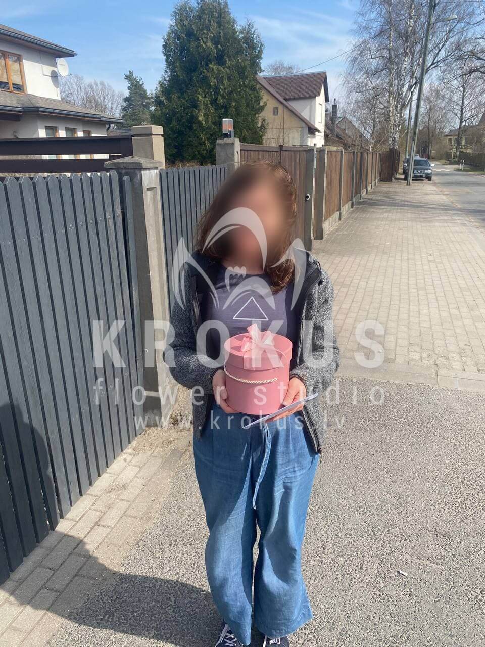 Mēs piegādājām vēl vienu pasūtījumu uz pilsētu Rīga. Pasūtītājs vēlējās: Ziedu piegāde Flowerbox ar macarooniem (Izmērs: