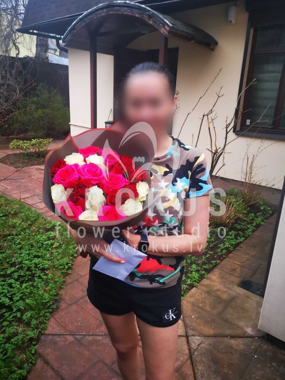 Ziedu sastāvā: Rozā rozes, Sarkanas rozes, Baltas rozes.