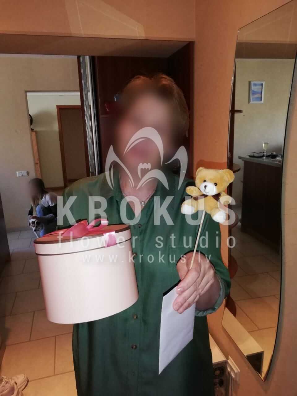 Mēs piegādājām vēl vienu pasūtījumu uz pilsētu Rīga. Pasūtītājs vēlējās: Ziedu piegāde Flowerbox ar makarūniem (macaroon) (Izmērs: