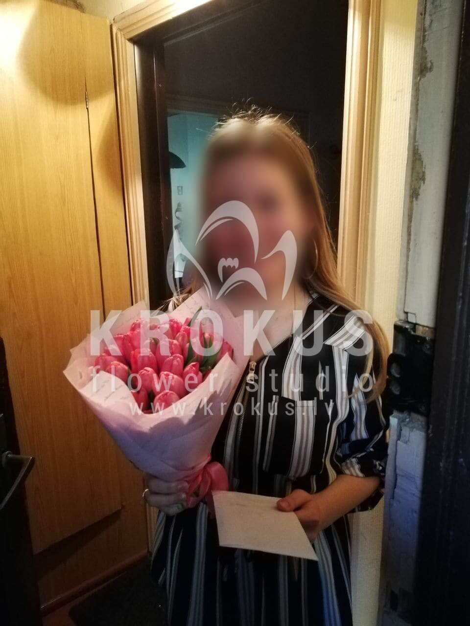 Mēs piegādājām vēl vienu pasūtījumu uz pilsētu Rīga. Pasūtītājs vēlējās: Ziedu piegāde Rozā dārza tulpes 25cm (Augstums 25-30cm)