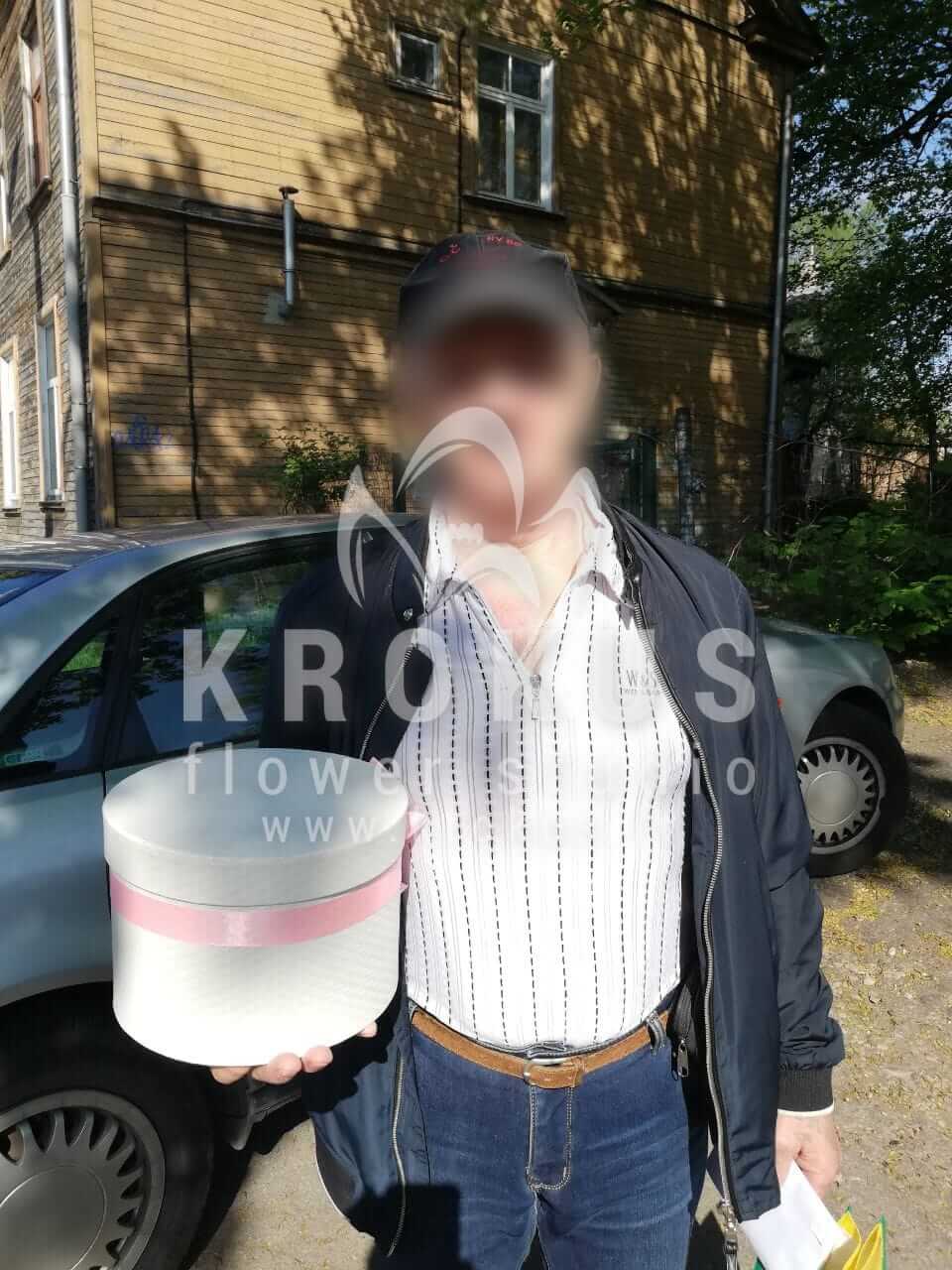 Mēs piegādājām vēl vienu pasūtījumu uz pilsētu Rīga. Pasūtītājs vēlējās: Ziedu piegāde Flowerbox ar makarūniem (macaron) (Izmērs: