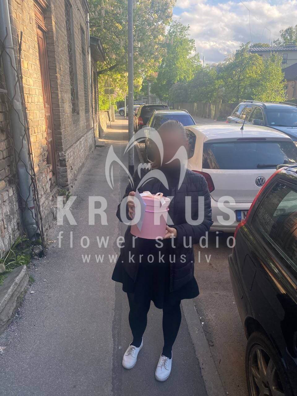 Mēs piegādājām vēl vienu pasūtījumu uz pilsētu Rīga. Pasūtītājs vēlējās: Ziedu piegāde Flowerbox ar macarooniem (Izmērs: