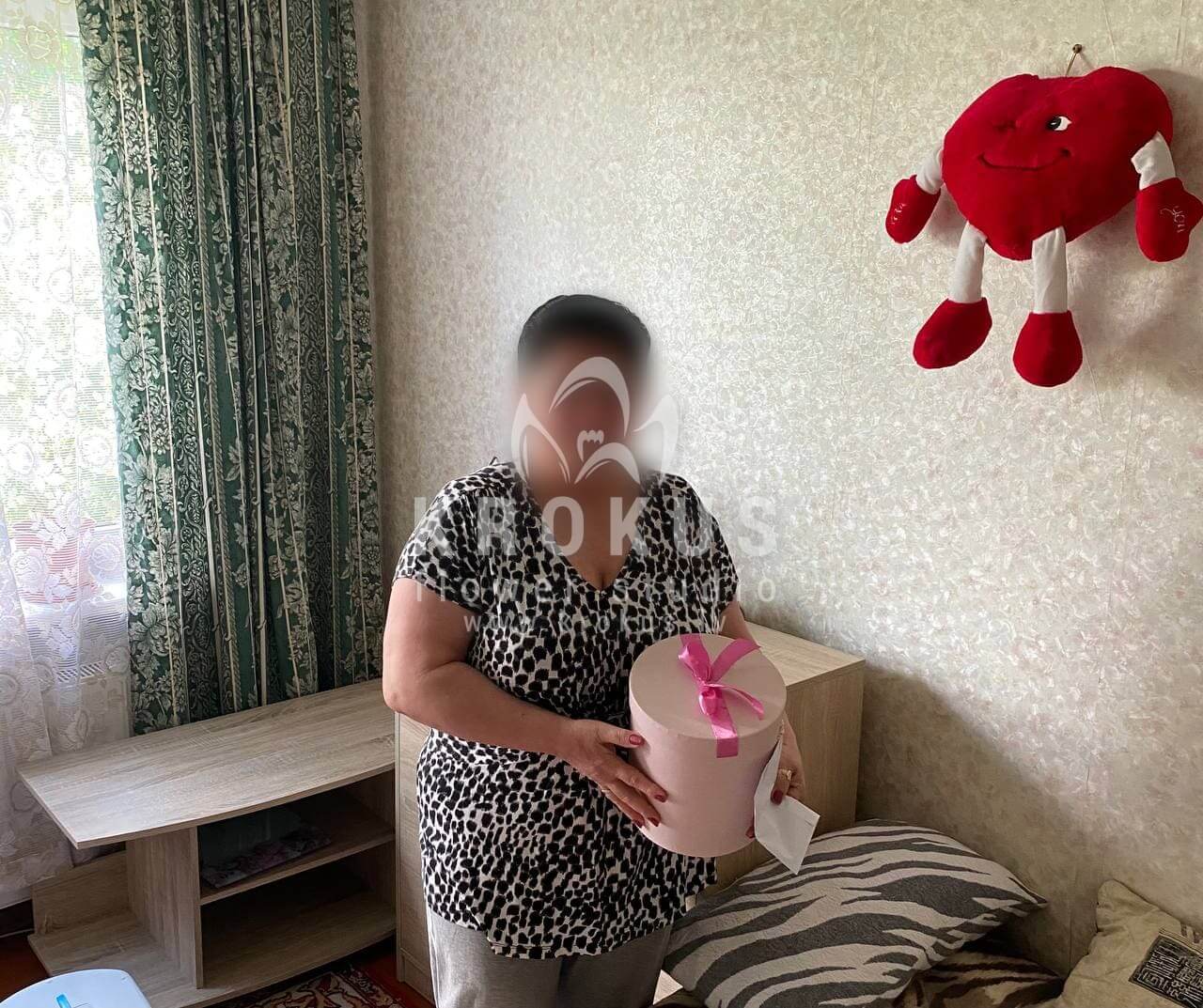 Mēs piegādājām vēl vienu pasūtījumu uz pilsētu Rīga. Pasūtītājs vēlējās: Ziedu piegāde Flowerbox ar macarooniem (Izmērs:
