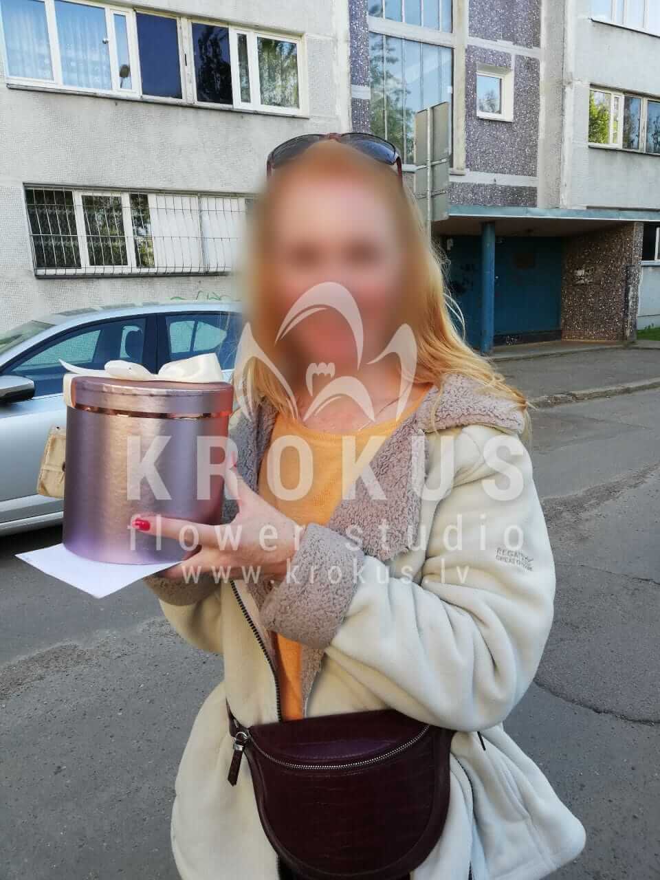 Mēs piegādājām vēl vienu pasūtījumu uz pilsētu Rīga. Pasūtītājs vēlējās: Ziedu piegāde Flowerbox ar macarooniem (Izmērs: