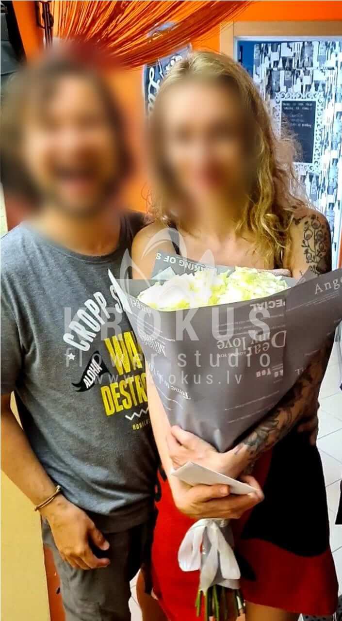 Mēs piegādājām vēl vienu pasūtījumu uz pilsētu Rīga. Pasūtītājs vēlējās: Ziedu piegāde Baltas rozes XXL 50cm