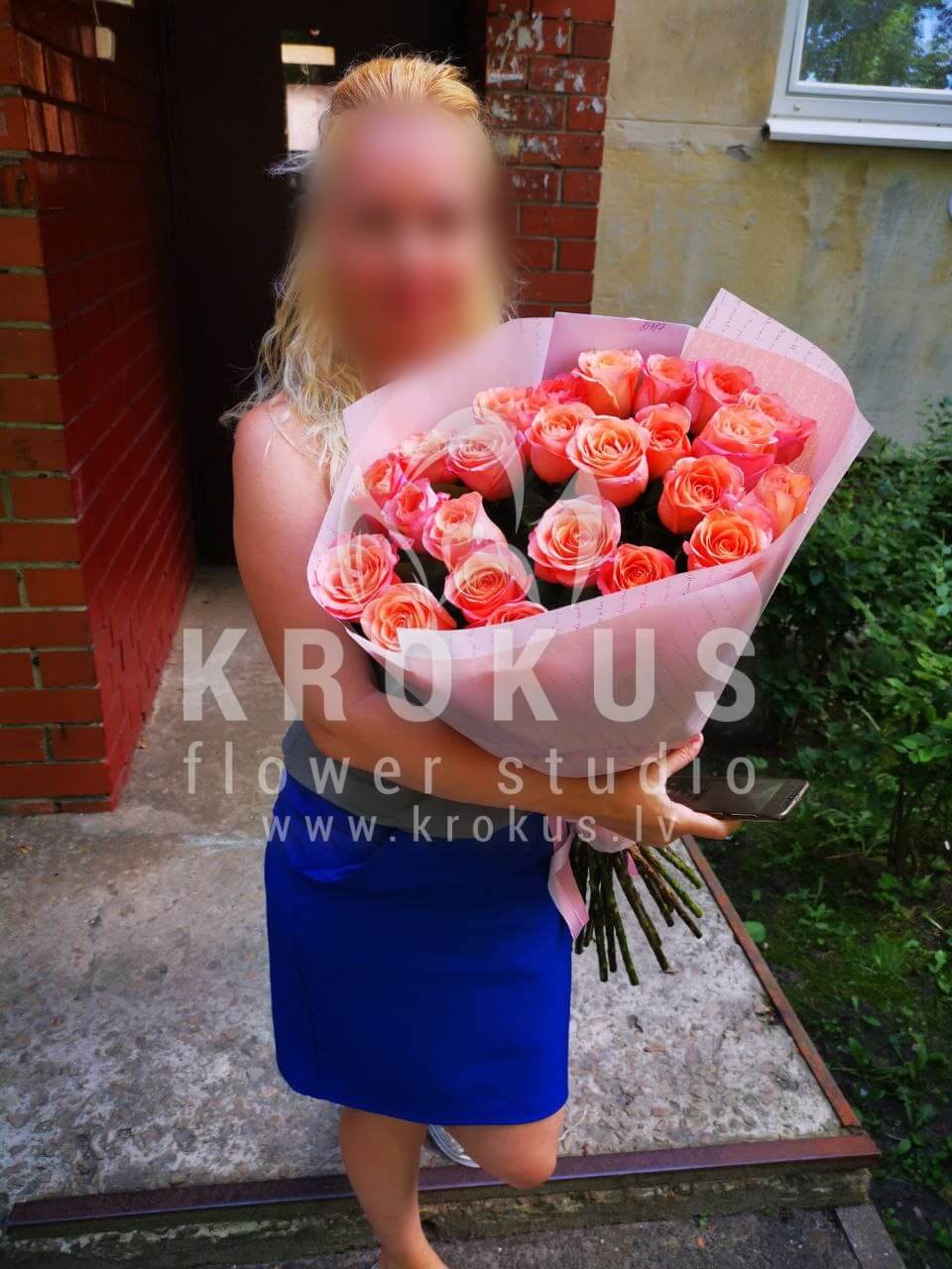 Mēs piegādājām vēl vienu pasūtījumu uz pilsētu Rīga. Pasūtītājs vēlējās: Ziedu piegāde Rozā rozes 60cm