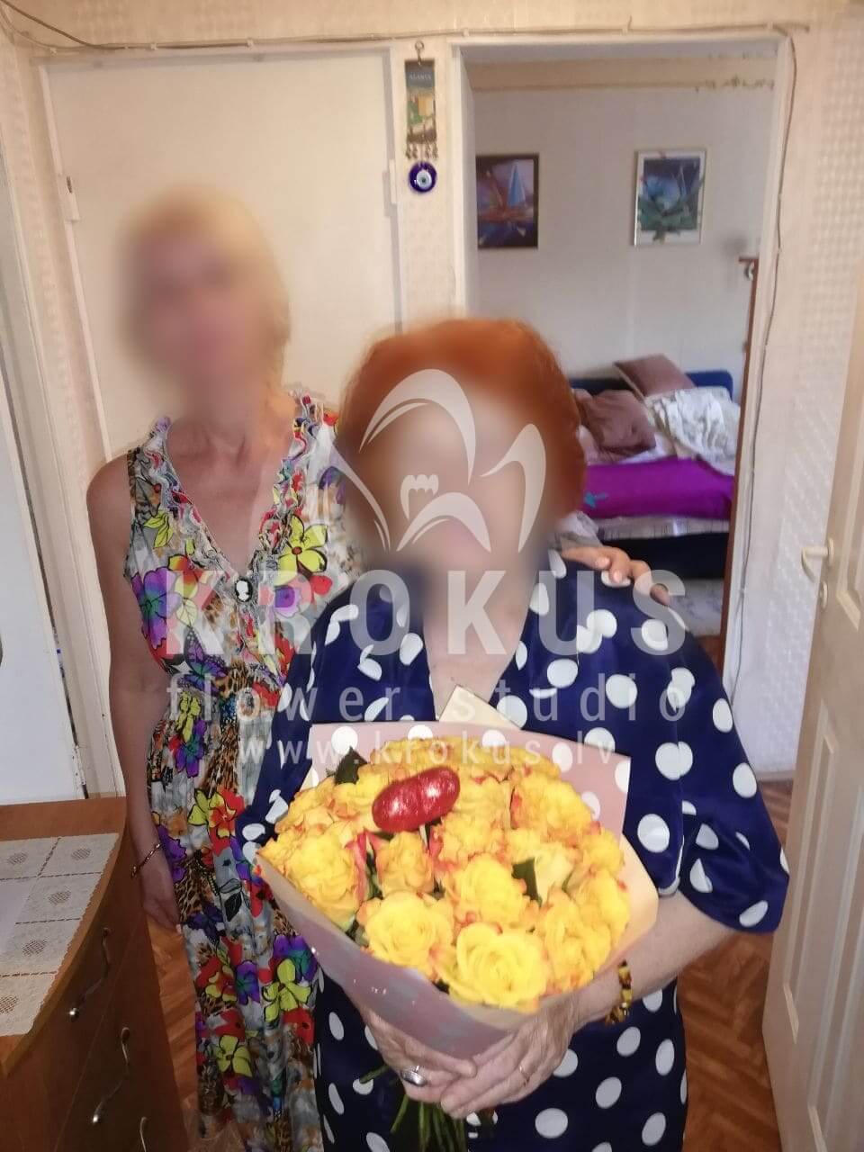Ziedu sastāvā: Dzeltenas rozes.