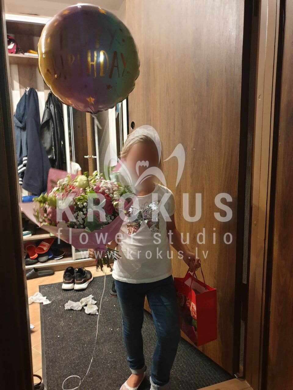 Mēs piegādājām vēl vienu pasūtījumu uz pilsētu Rīga. Pasūtītājs vēlējās: Ziedu piegāde Lūcija (Pušķa sastāvs var nedaudz atšķirties no attēlā redzamā, atkarībā no sezonas!). Ziedu piegāde Follija balons Daudz Laimes46cm