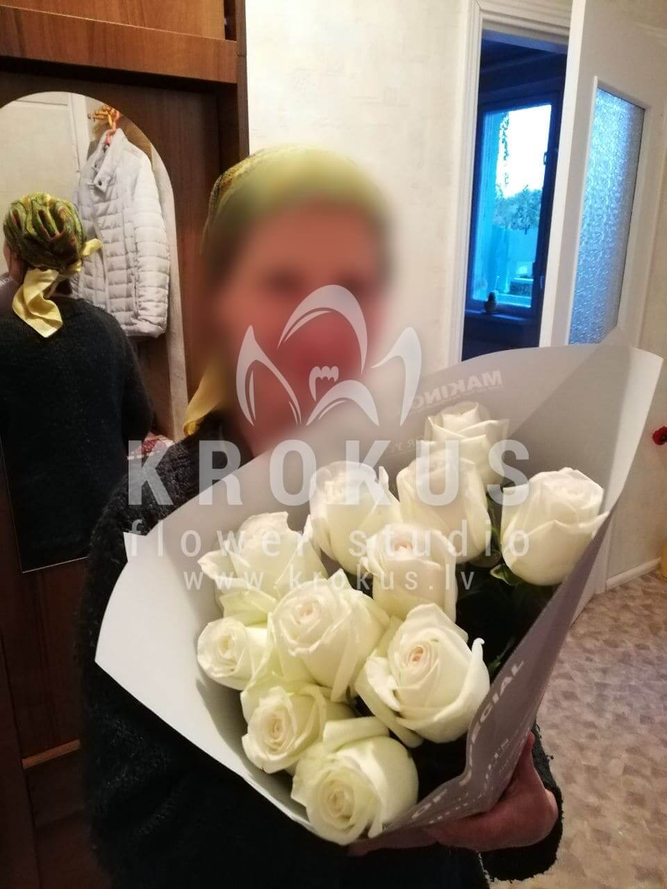 Mēs piegādājām vēl vienu pasūtījumu uz pilsētu Rīga. Pasūtītājs vēlējās: Ziedu piegāde Baltas rozes XXL 50cm