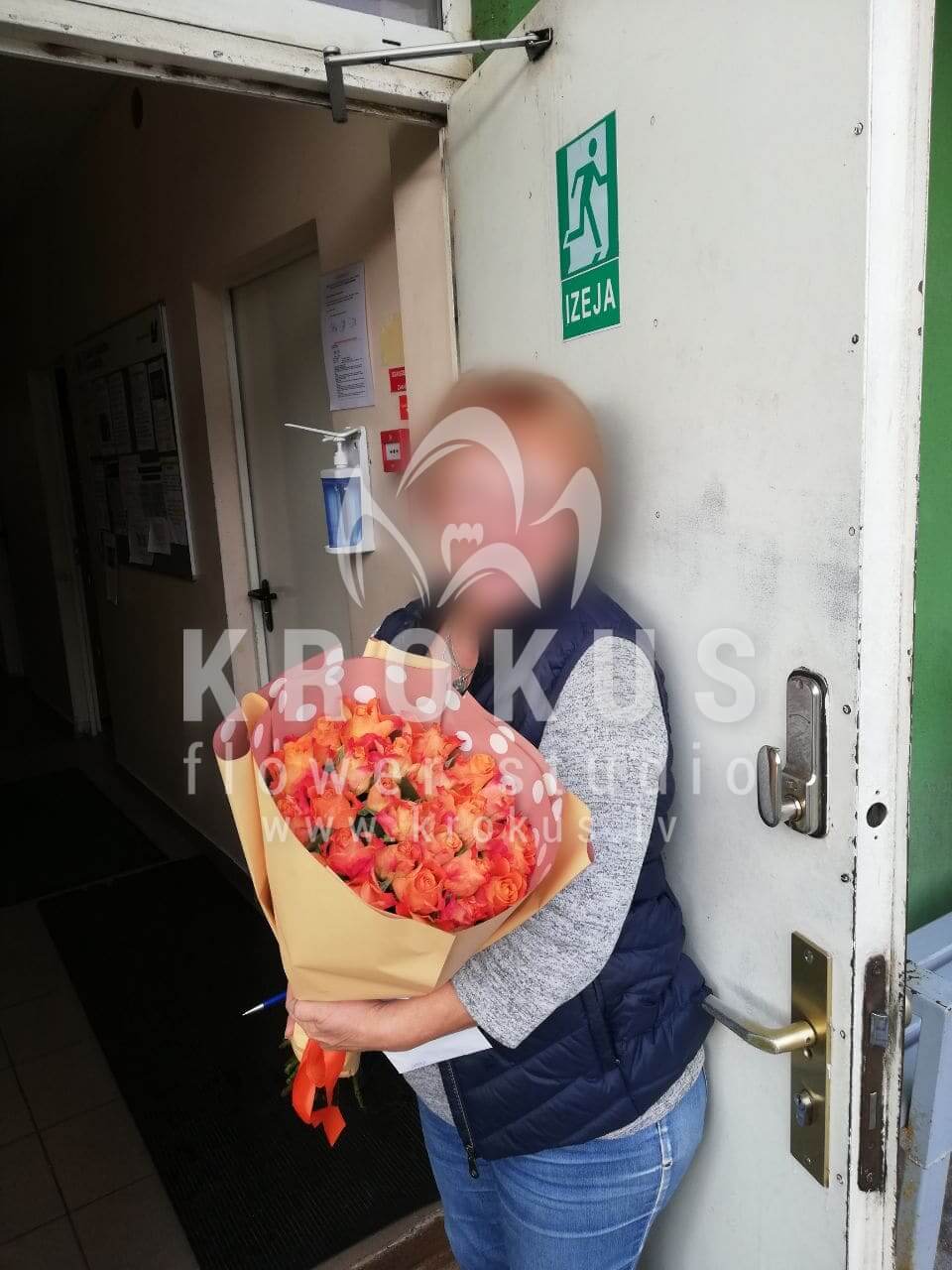 Ziedu sastāvā: Oranžas rozes.