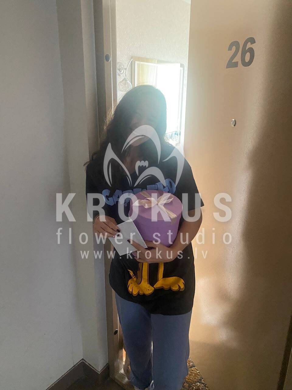 Mēs piegādājām vēl vienu pasūtījumu uz pilsētu Rīga. Pasūtītājs vēlējās: Ziedu piegāde Flowerbox ar makarūniem (macaroon) (Izmērs: