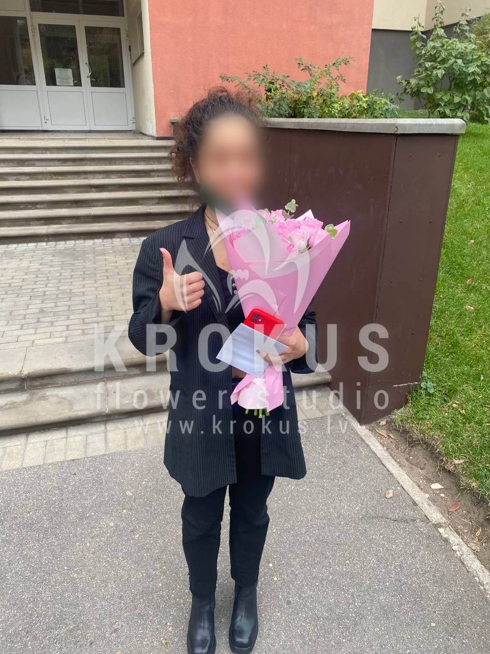 Mēs piegādājām vēl vienu pasūtījumu uz pilsētu Rīga. Pasūtītājs vēlējās: Ziedu piegāde Rozā rozes 60cm